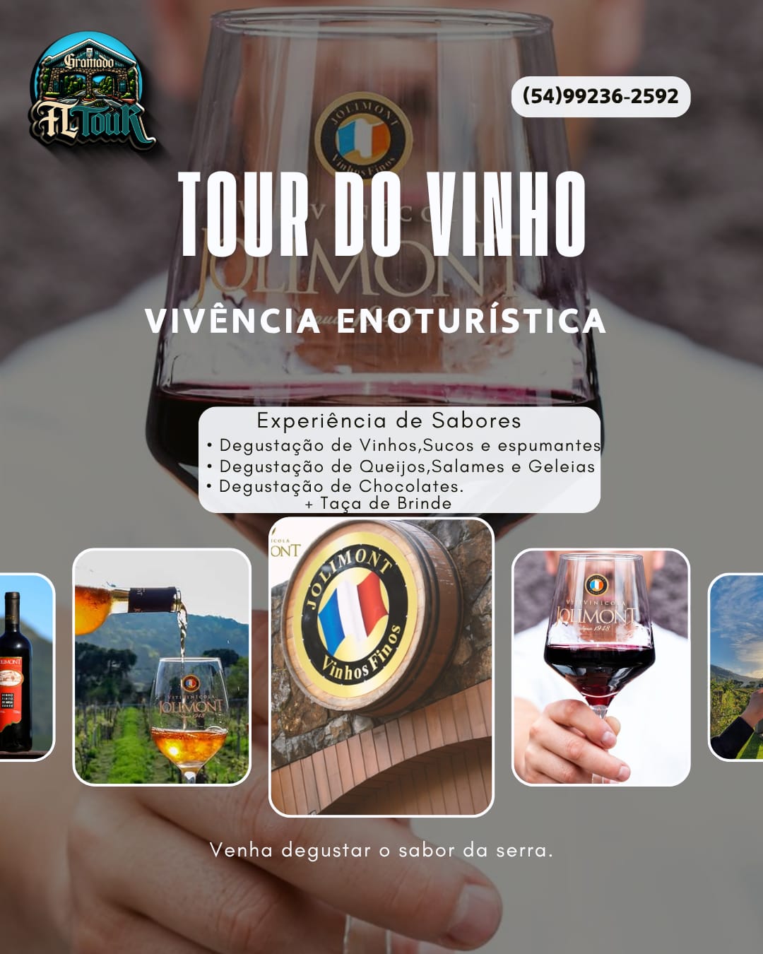 - Vinícola Jolimont: Mergulhe na tradição vitivinícola da região em uma vinícola de origem francesa, onde cada vinho é elaborado artesanalmente. Degustações guiadas, paisagens deslumbrantes e uma atmosfera que celebra o melhor da Serra.