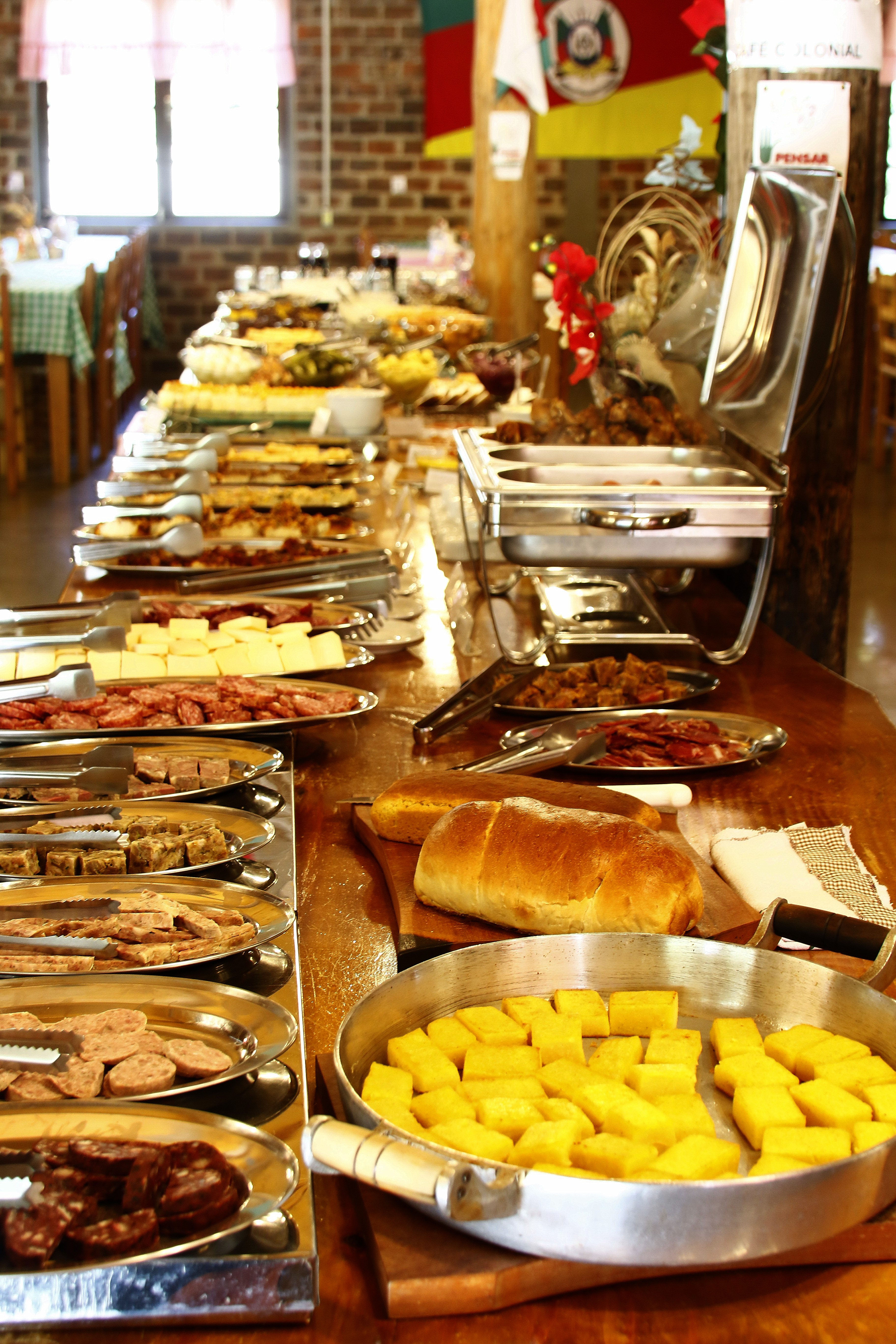 4 - CAFFÉ DELLA NONNA - FAMÍLIA FOSS: O povo italiano é muito hospitaleiro e adora ter a casa cheia de amigos para celebrar. Assim é que a Família Foss recebe os visitantes em sua residência e oferece o saboroso Caffè Della Nonna com pães caseiros saindo quentinhos do forno à lenha, deliciosas geleias de frutas, manteiga fresca, queijos, salames, linguiças cozidas e muito mais. Claro, não podemos esquecer da polenta que é um prato que representa bem a culinária italiana. Bebidas inclusas: chá de maçã com canela, chá de cidreira com baunilha, café preto e café com leite, sucos de uva, vinho tinto seco e suave. Muita música e alegria com animação e participação para cantarmos Lá Bella Polenta e se divertir com a família.